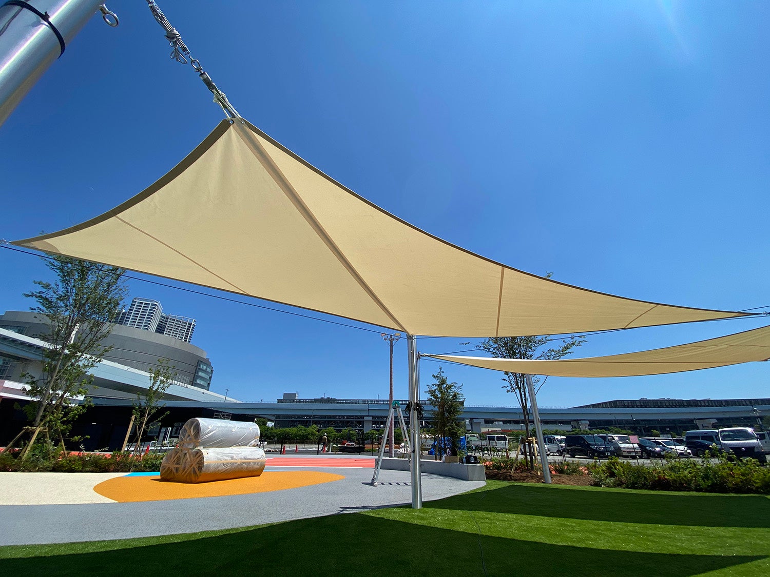 建築卸売業の「協栄ジェネックス株式会社」様、産業用資材織物卸売業の「大一帆布株式会社」様と協力し、セットパッケージングされた製品の販売でアルミポールが猛暑対策に一役買っております。