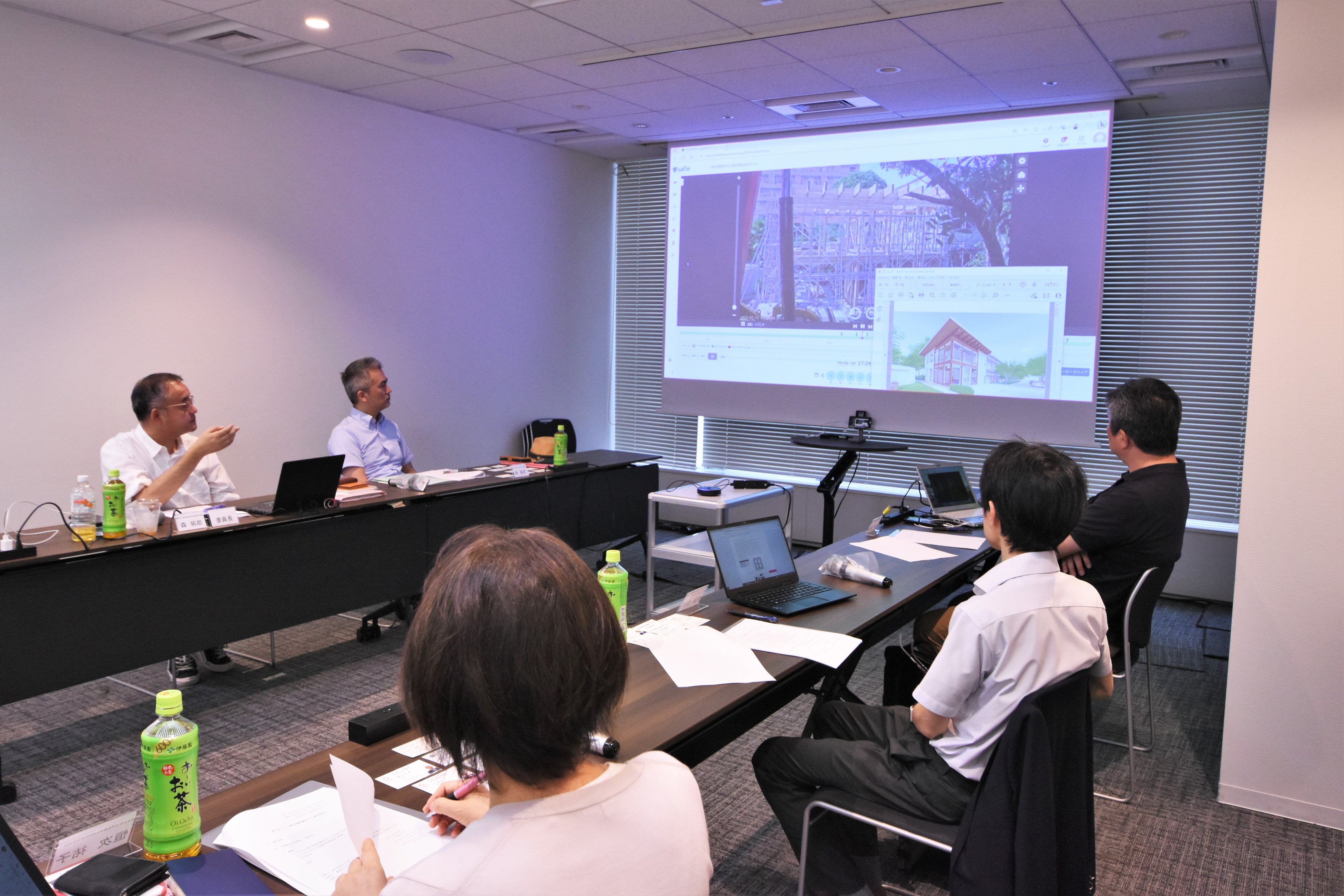 2023年7月14日(金)には、第1回目となる委員会を開催。当社がベトナム行政機関と連携し木造モデルをハノイに建築している『IBST木造モデルプロジェクト』の建て方工事と中継しました。
