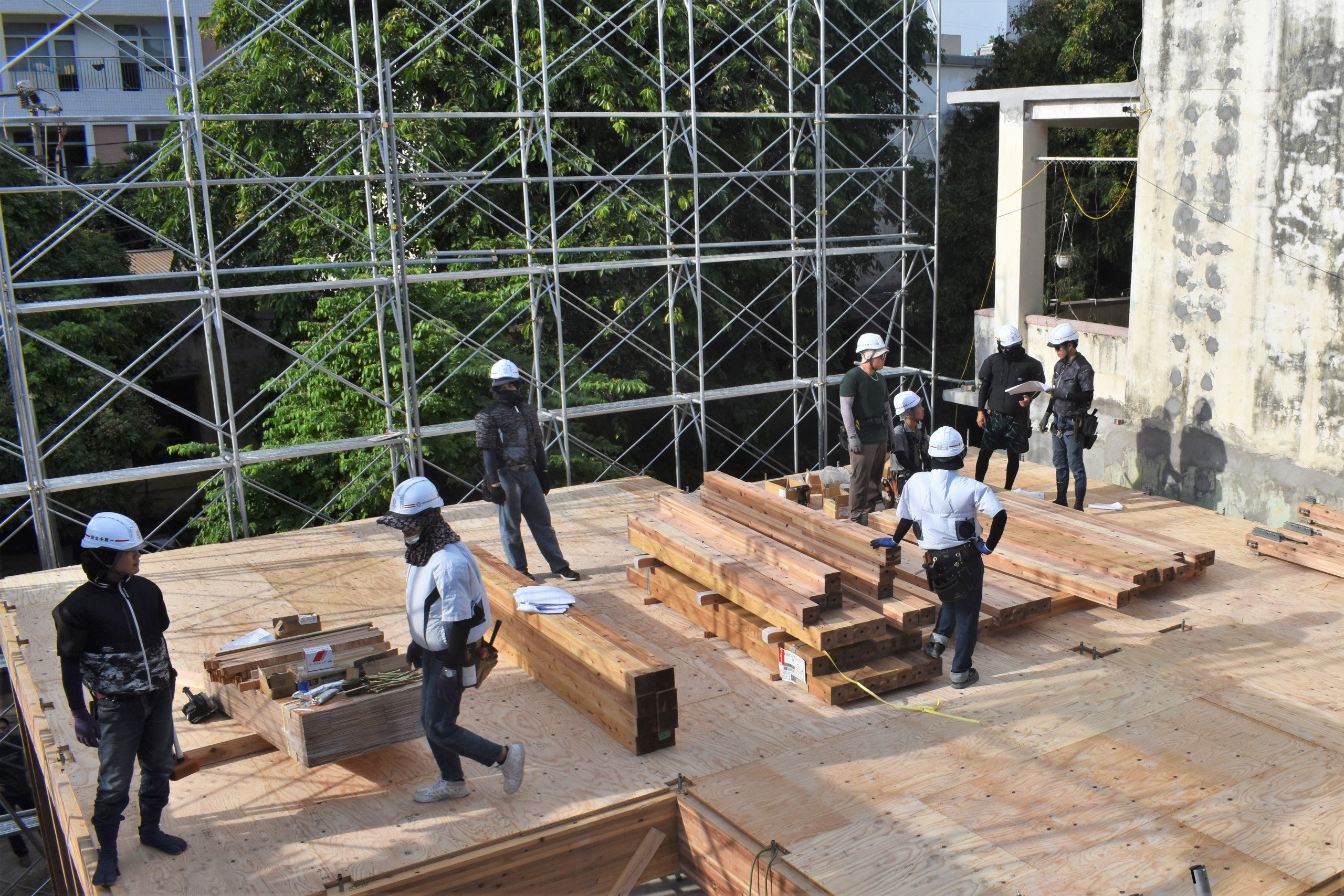 当社は、ベトナムにおける日本の木造建築の普及を目指す中、ベトナム国内で木造建築が施工できる人材が重要になると考え、日本の木造軸組工法の知識と技術を身に付けたベトナム人社員大工の育成を行っています。日本の大工技術を伝承することで、ベトナムをはじめとする東南アジアへの日本の木造建築市場の開拓・普及の実現化を目指します。