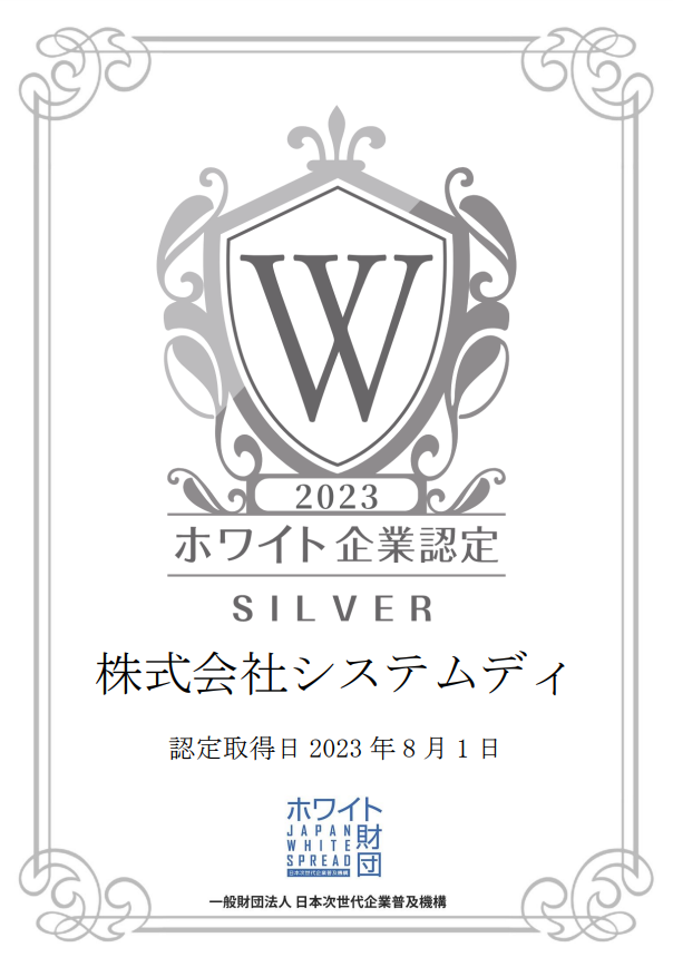 株式会社システム ディは2023年8月1日に「ホワイト企業認定 シルバーランク」を取得されました!