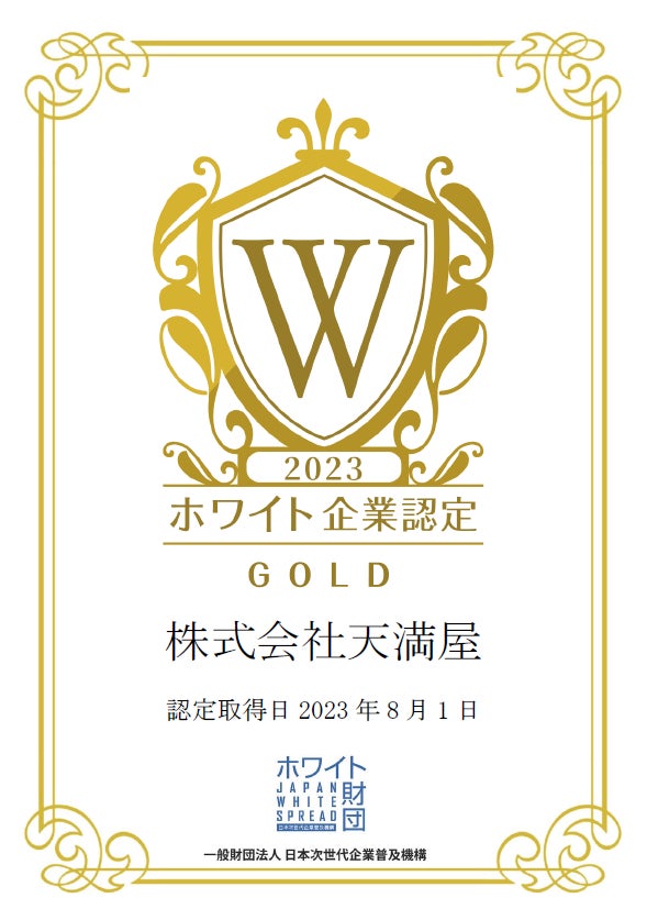 株式会社天満屋 様が、一般財団法人日本次世代企業普及機構(通称:ホワイト財団)が運営する「ホワイト企業認定 ゴールドランク 」を取得しましたことをお知らせいたします。