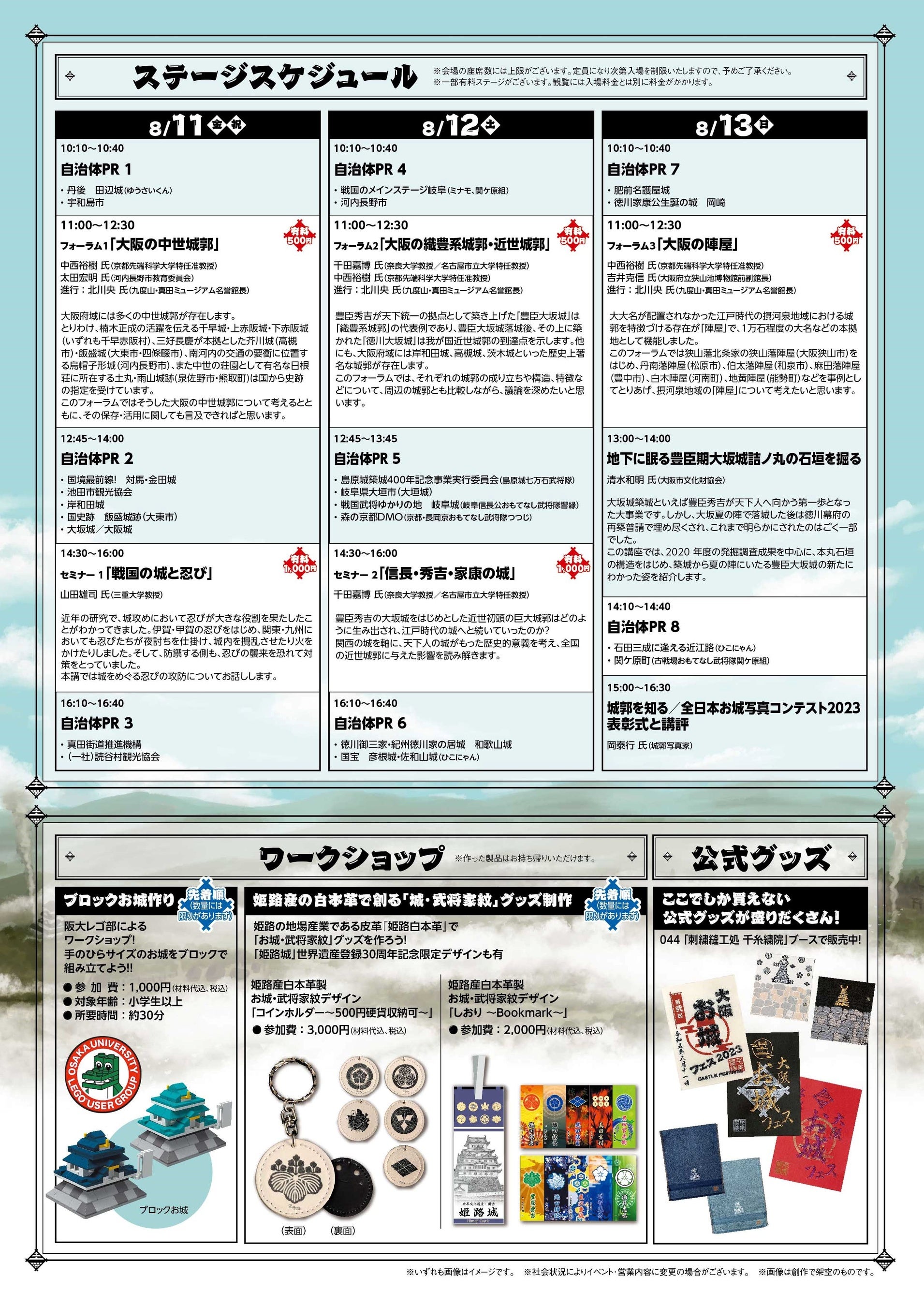 テレビ大阪株式会社と株式会社コングレは、2023年8月11日(金・祝)から開催される『第弐回 大阪・お城フェス2023』のフォーラムとセミナー(入場料とは別に参加料要)を含むステージイベントの全概要を発表しました。内容は以下の通りです。