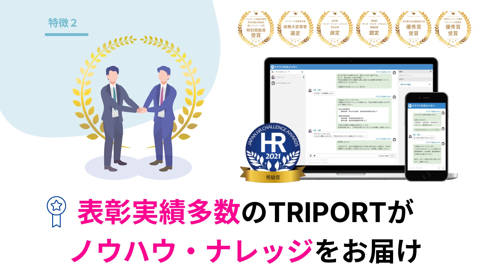 HR分野で厚生労働省や総務省・東京都から表彰を受けたTRIPORTが、自社実践にて得たナレッジ・ノウハウをもとに、人事・労務・助成金・法改正・IT等に関する有益な情報提供を行います。