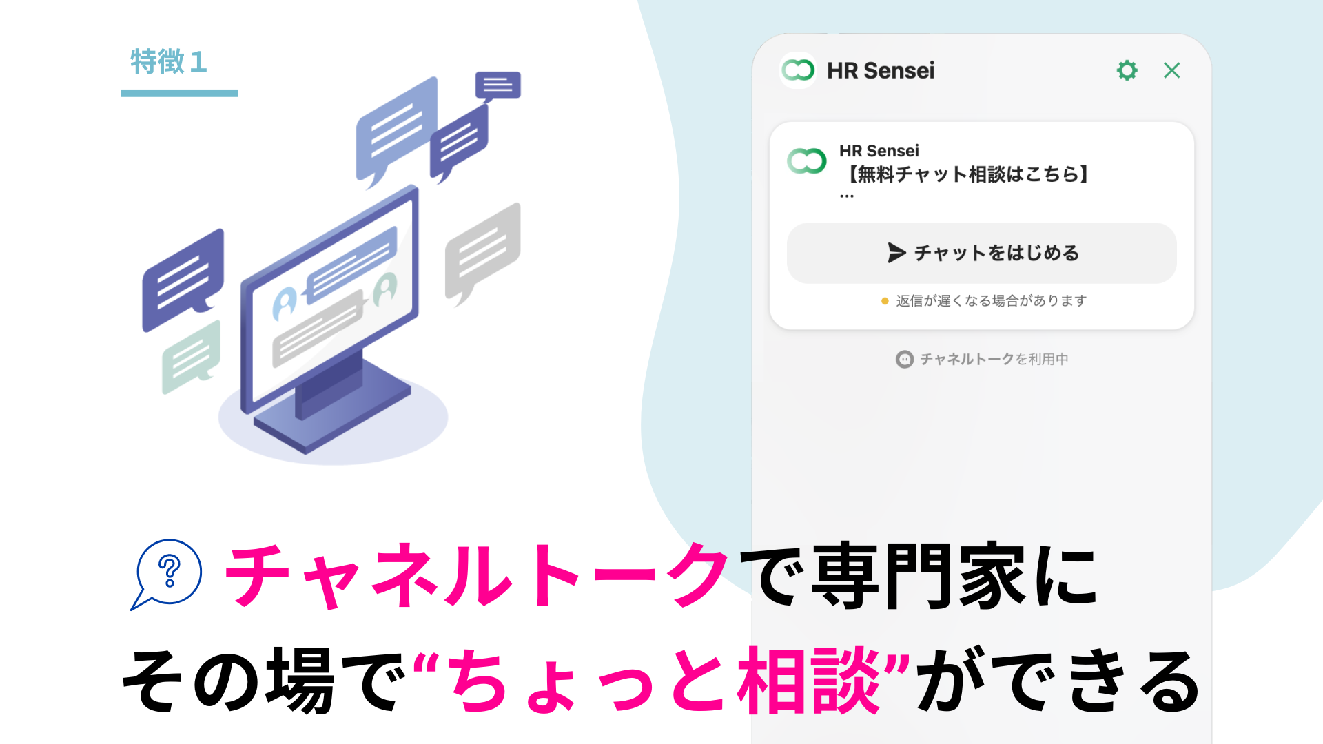 「HR Sensei」にアクセスした方は、記事等を閲覧し情報をただインプットするだけでなく、記事を読んで疑問に思う点があれば、その場でオンラインチャットを使って、「うちの会社の場合どうなんだろう?」「こんな時どうすればいいんだろう?」など、記事を読むだけでは解消しきれなかった疑問点を、WEB上でそのまま質問することが可能です。