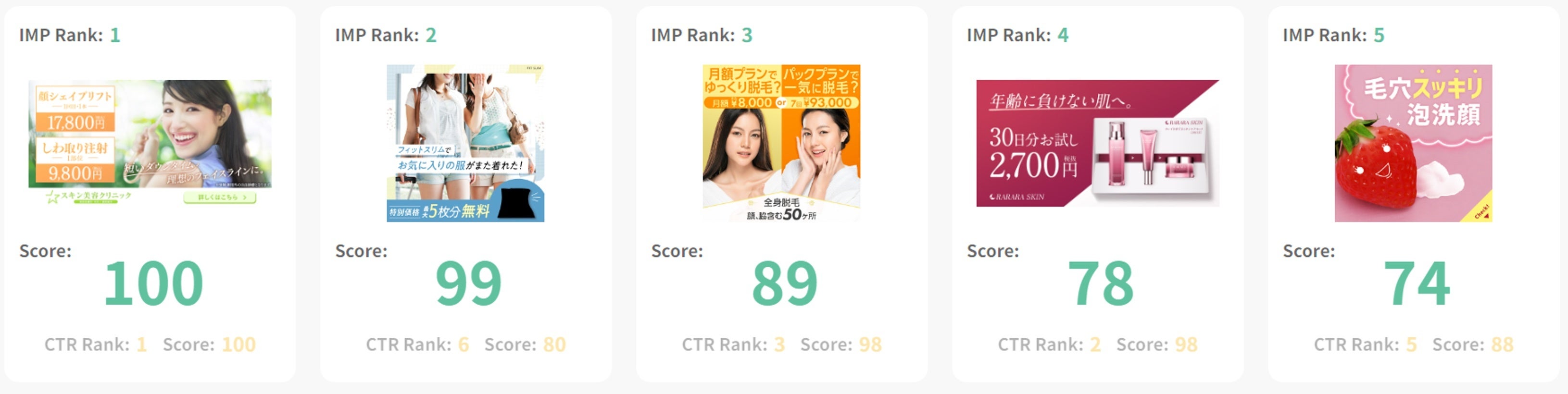 ・ 成果予測AIによるクリエイティブ判定機能 – 独自アルゴリズムによるクオリティ評価