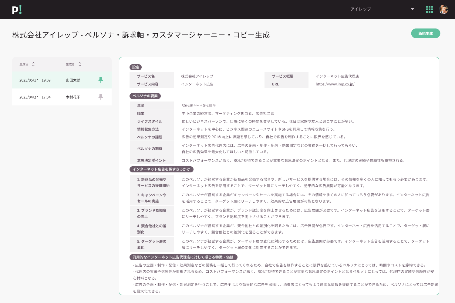 ・ ChatGPTクリエイティブ制作アシスト機能 – ペルソナ・訴求軸・キャッチコピー生成