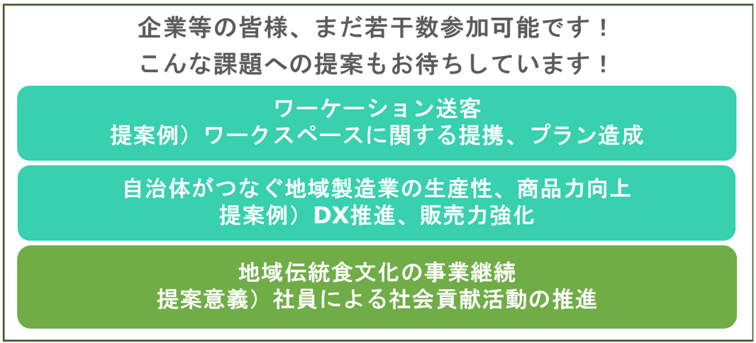 参加を検討中の企業等の皆様はこちらで自治体からの提案書にアクセスしてください。