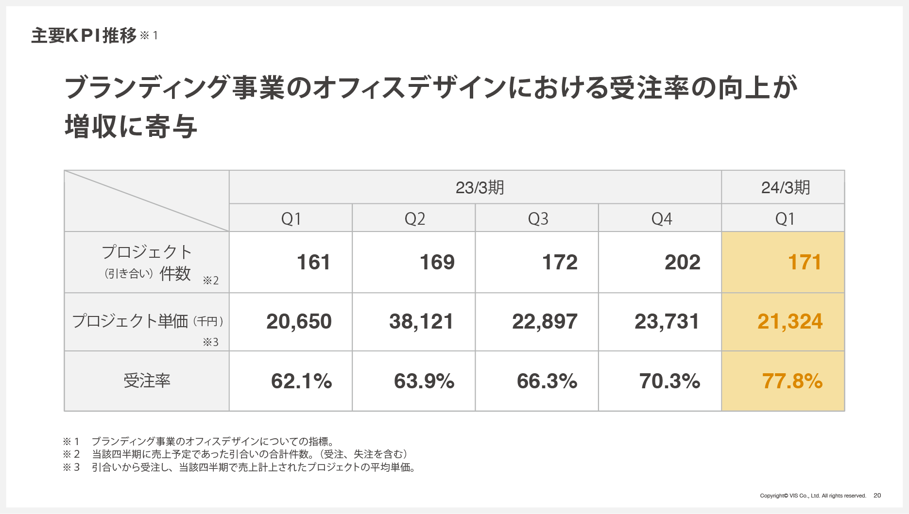ブランディング事業のオフィスデザインにおける受注率の向上が増収に寄与しました。
