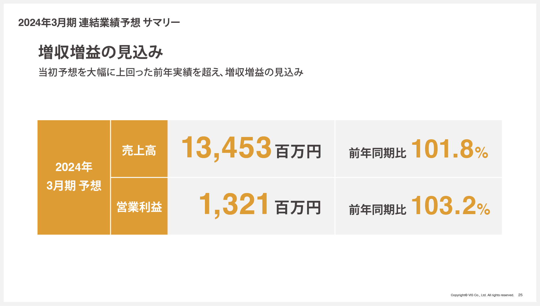 当初予想を大幅に上回った前年実績を超え、増収増益の見込みです。