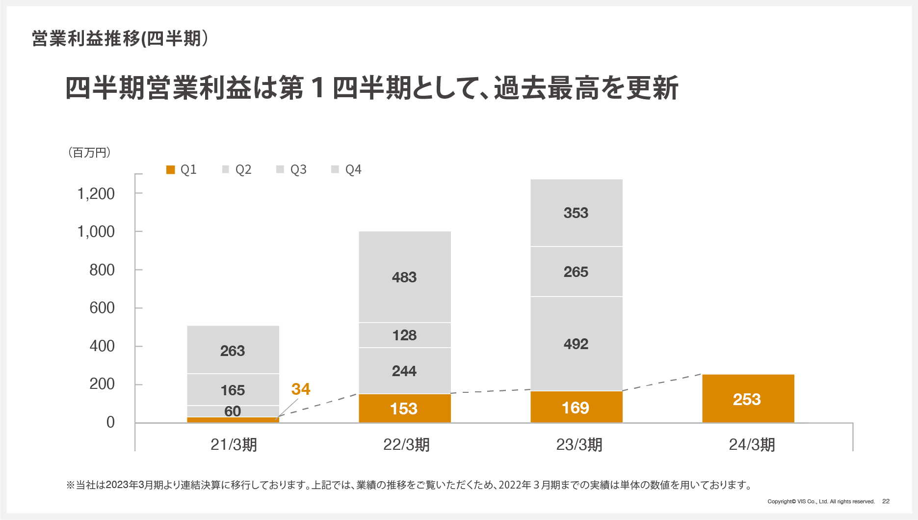 四半期営業利益は第1四半期として、過去最高を更新しました。