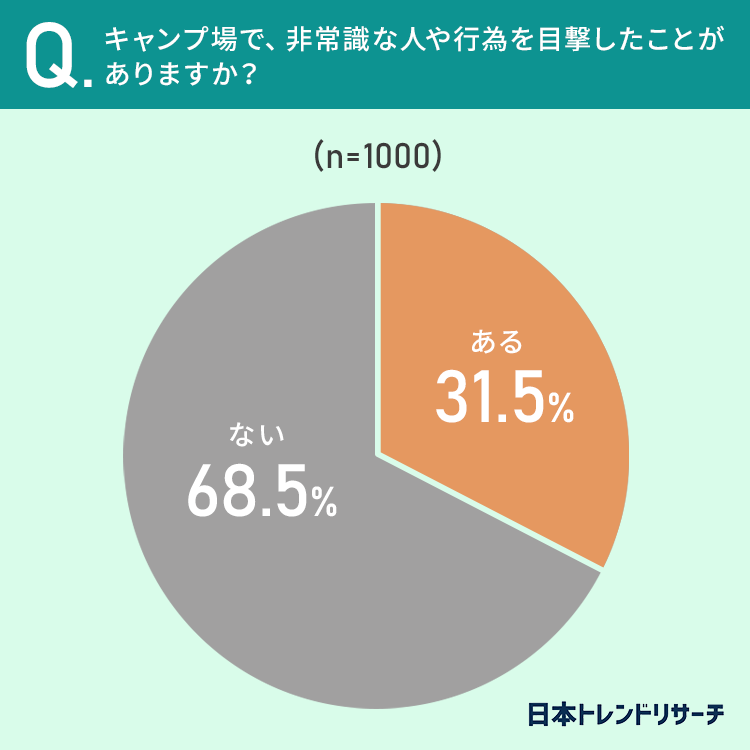 31.5%の方が、キャンプ場で、非常識な人や行為を目撃したことが「ある」と回答しました。