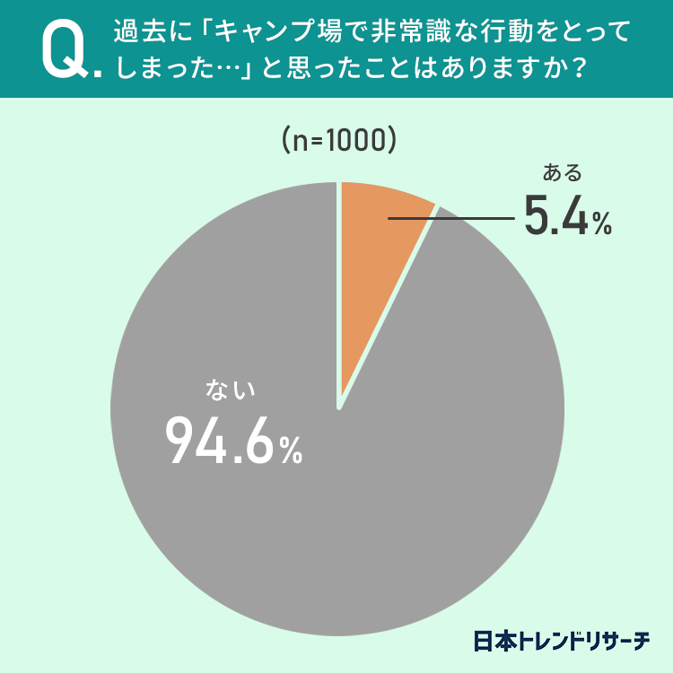 5.4%の方が、過去に「キャンプ場で非常識な行動をとってしまった」と思ったことが「ある」と回答しています。