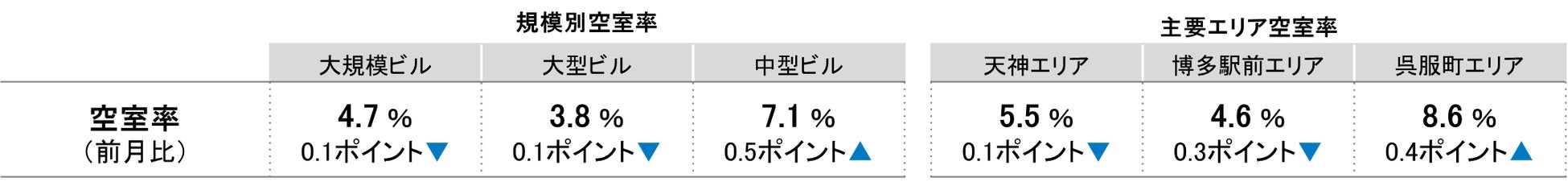 全規模ビル 主要エリア 空室率:「博多駅前」3ヵ月連続で低下