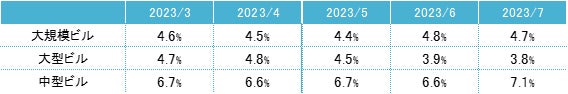 規模別 空室率:「中型」大幅に上昇し、2022年2月以来の7%台へ