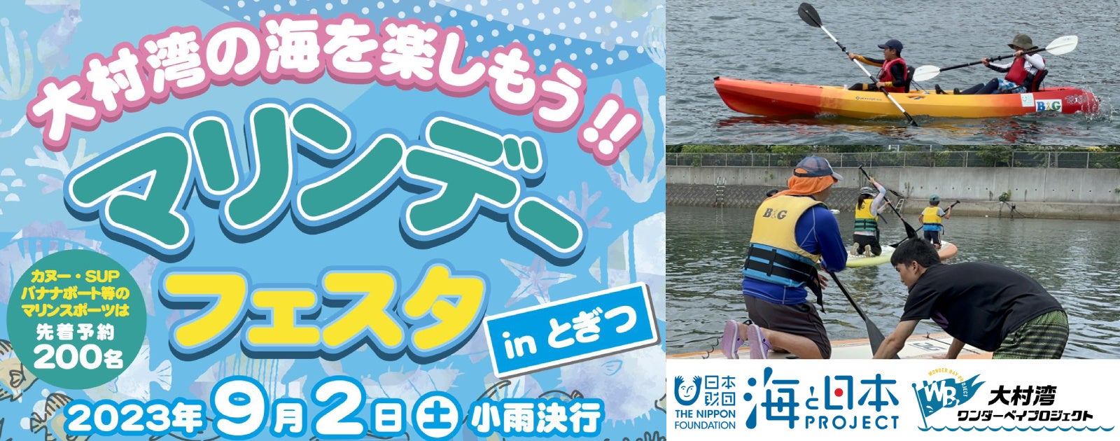 大村湾ワンダーベイプロジェクトは、地元大村湾を身近に感じ、海の環境について考えるきっかけを創出していきます。このイベントは、次世代へ豊かで美しい海を引き継ぐために、海を介して人と人とがつながる“日本財団「海と日本プロジェクト」”の一環です。