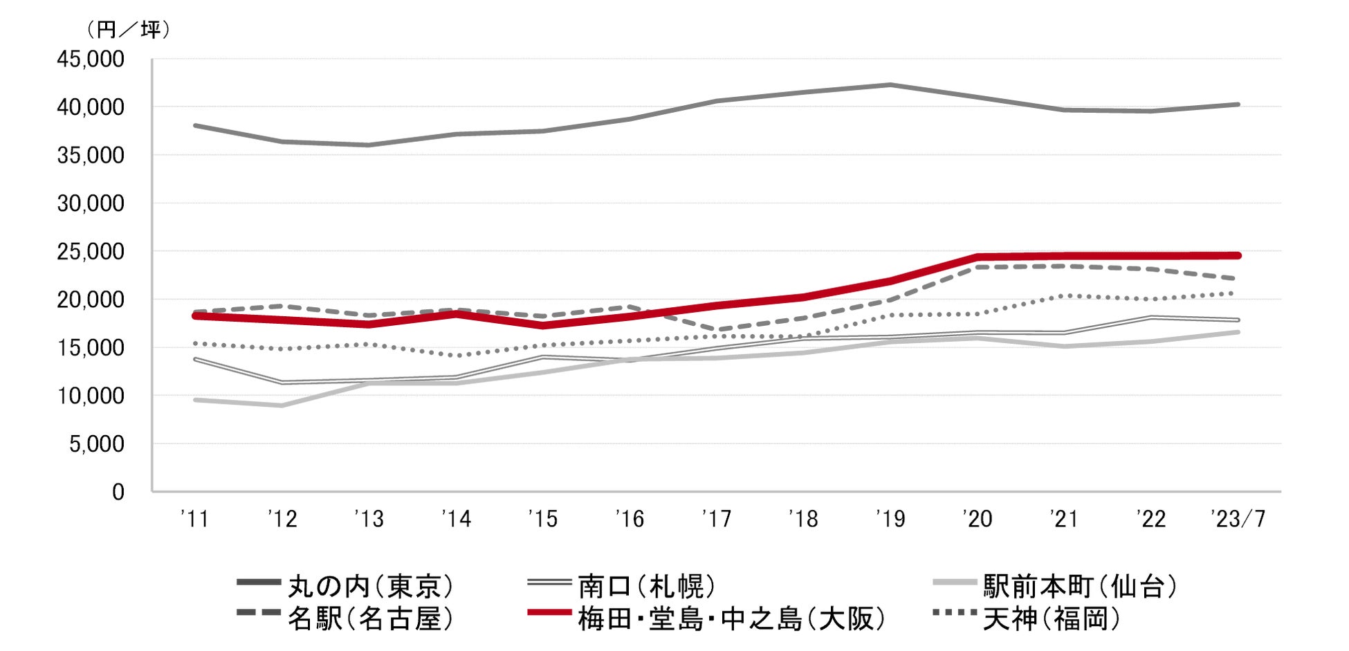 • 大阪市 大規模ビル 募集賃料&募集面積