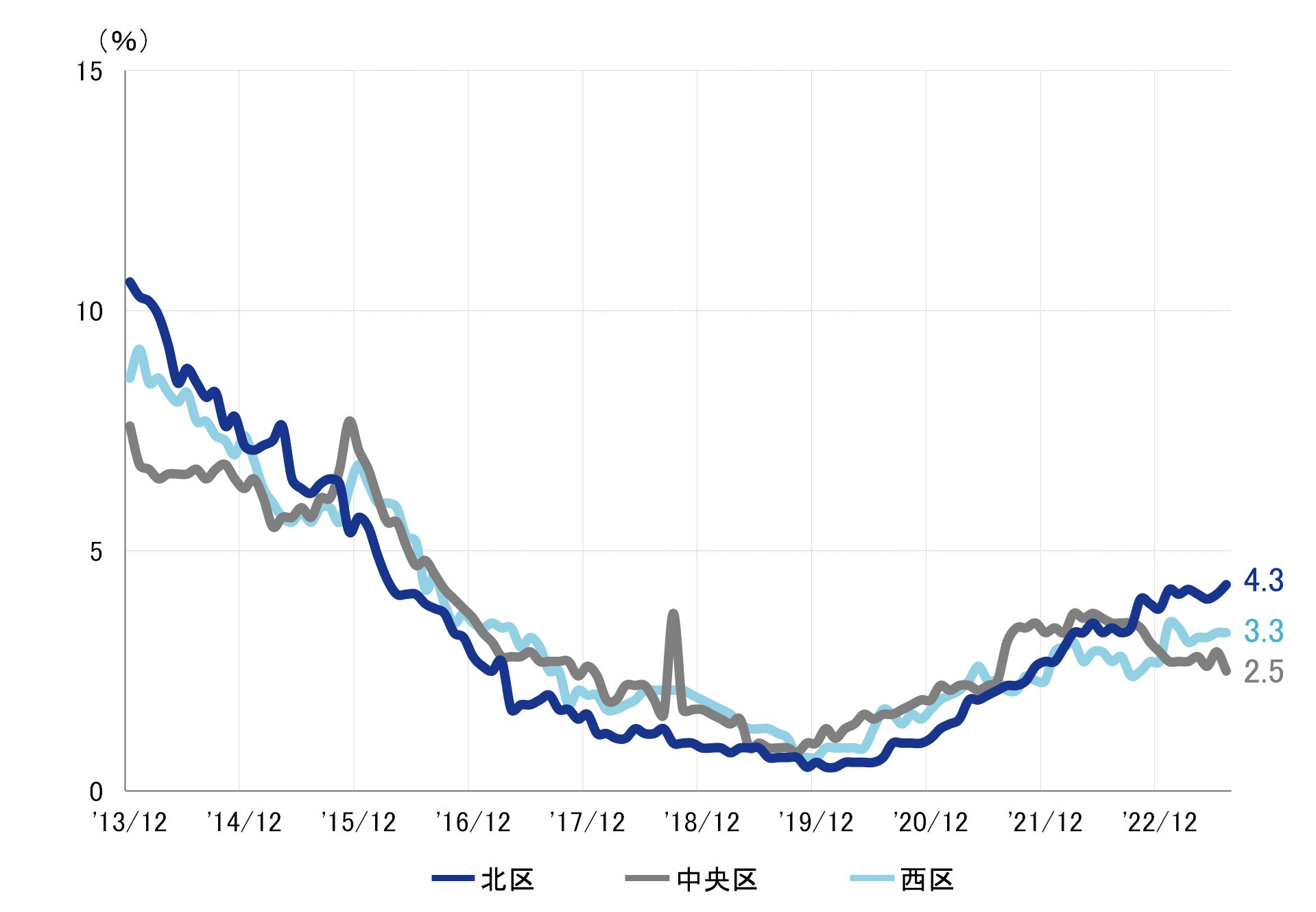 大規模ビル 主要3区 空室率:各エリアで異なる動き