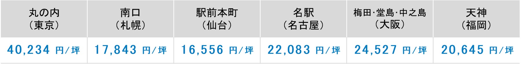 その他の全国6大都市の大規模ビル(東京・札幌・仙台・名古屋・大阪・福岡)のマーケットデータをまとめた各都市のプレスリリースは、下記リンク先よりダウンロードいただけます。