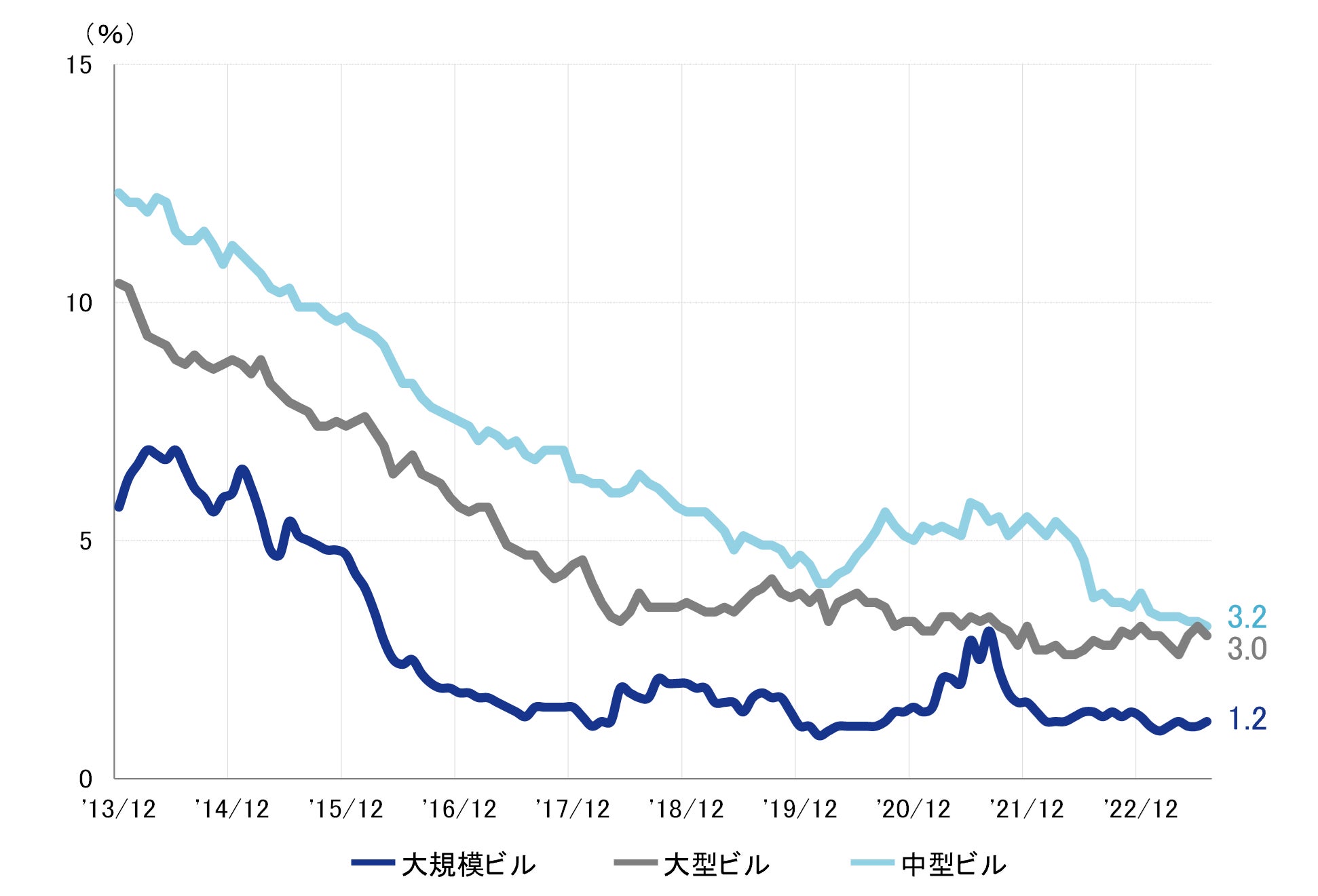 規模別 空室率:「中型」3ヵ月連続で統計開始以来の最低値を更新