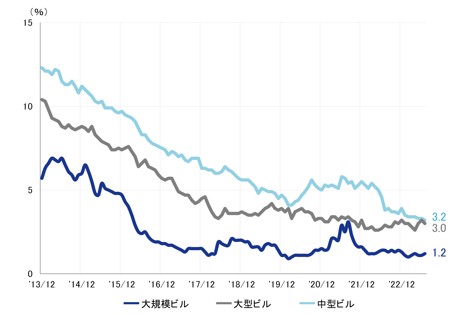 規模別 空室率:「中型」3ヵ月連続で統計開始以来の最低値を更新