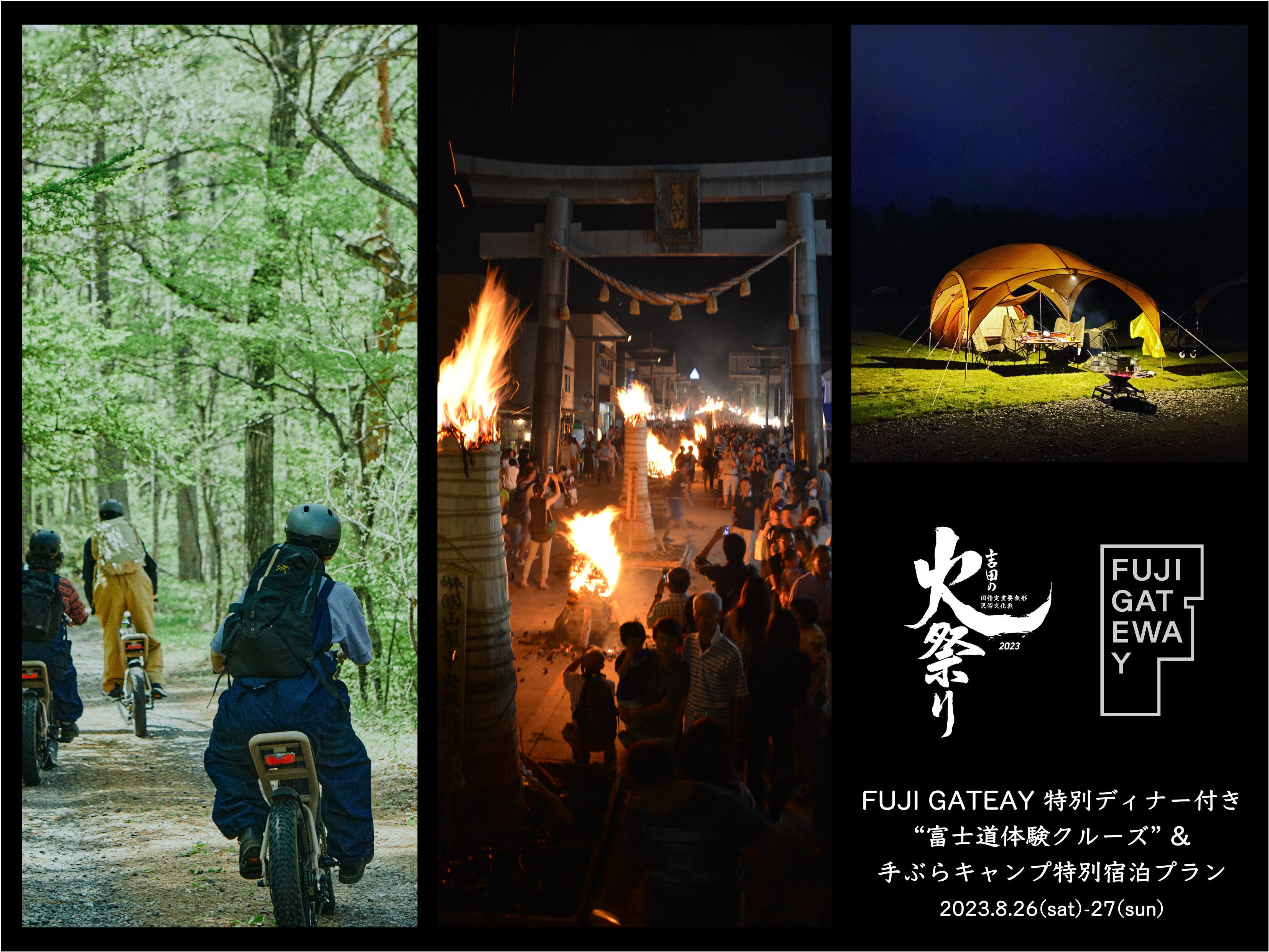 内 容 : FUJI GATEWAY 「吉田の火祭り」特別ディナー付き 富士道体験クルーズ & 手ぶらキャンプ特別宿泊プラン