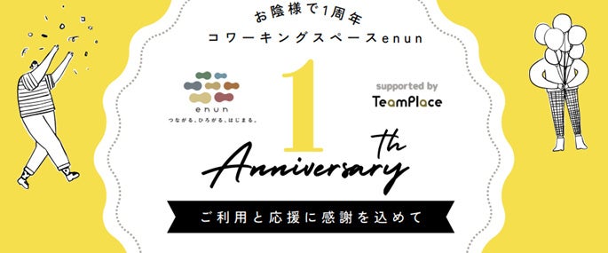 ご利用と応援に感謝を込めて【㊗enun1周年記念月間】として、皆さまと一緒に1周年をお祝いするイベントを開催します。