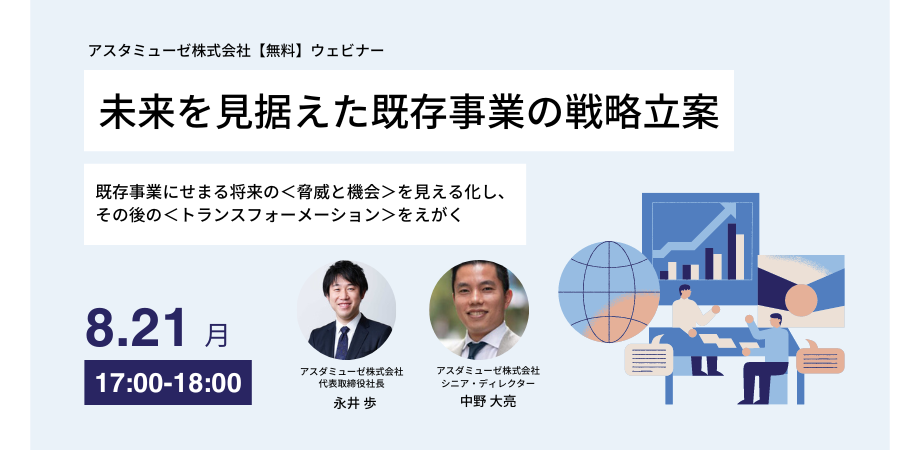 これまでアスタミューゼは、新規事業の事業アイデア提供や成長領域の提案など、新規事業に関する支援を主に行ってきました。実はその手法は既存事業でも応用できるものです。今回は既存事業への応用についてご紹介します。