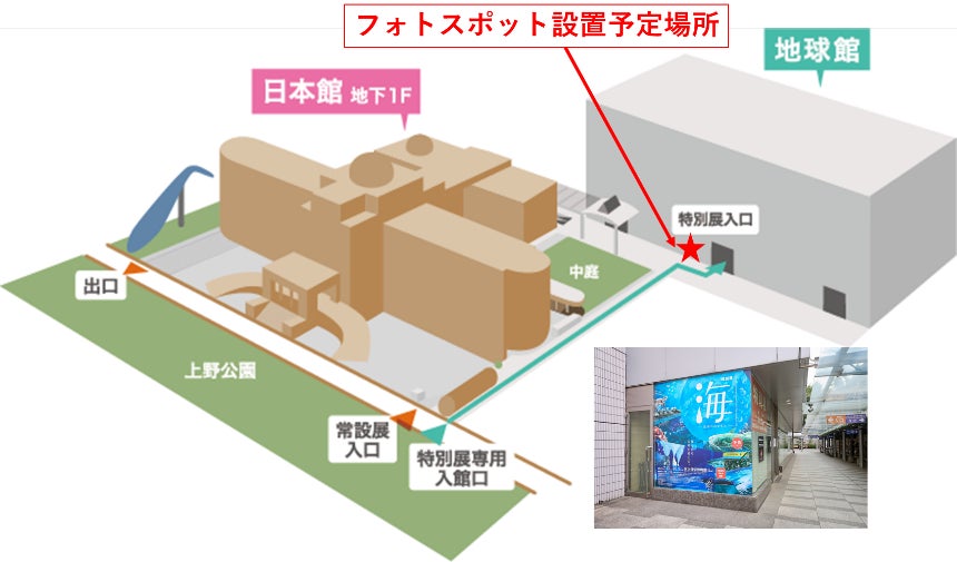 特別展会場入口の海展看板前に、期間限定で特設フォトスポットが出現!