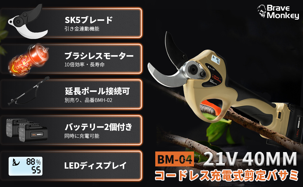 BM-04充電式剪定バサミ(切断径:40MM)商品ページ:https://shorturl.at/aoER8