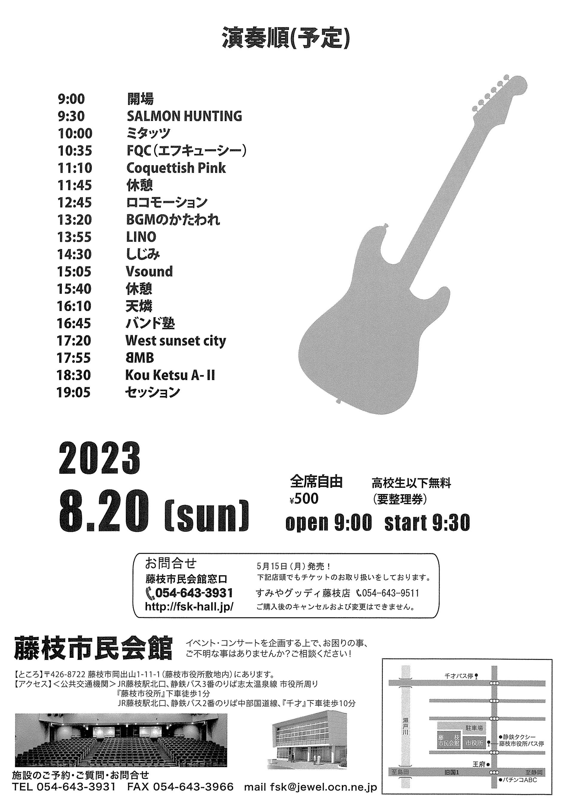 「音楽を通じて藤枝の町を盛り上げる」を合言葉に、2015年から開催。バンドフェス実行委員会が、市民会館指定管理者の協力のもと企画、運営を行っている。