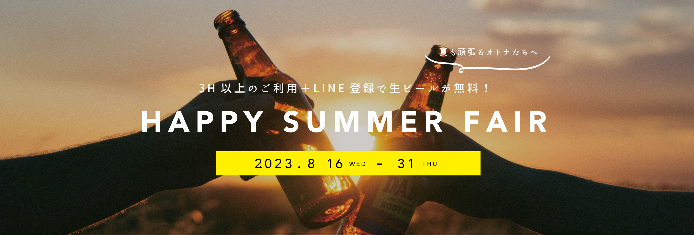 それでも十分お得ですが、フェアの期間中は公式LINEの登録+3時間以上の施設利用で、なんと生ビールを1杯プレゼント。