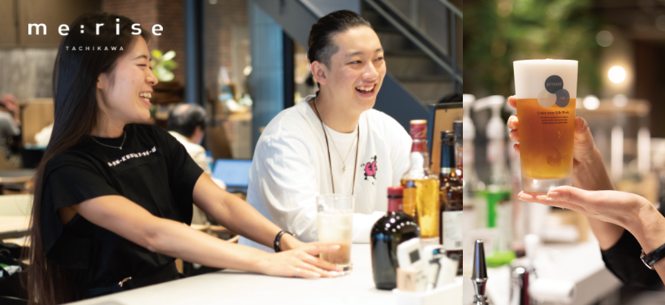 ① 一時利用の方は、me:rise立川公式LINEの登録と施設利用3時間以上で、生ビールを1杯プレゼント。