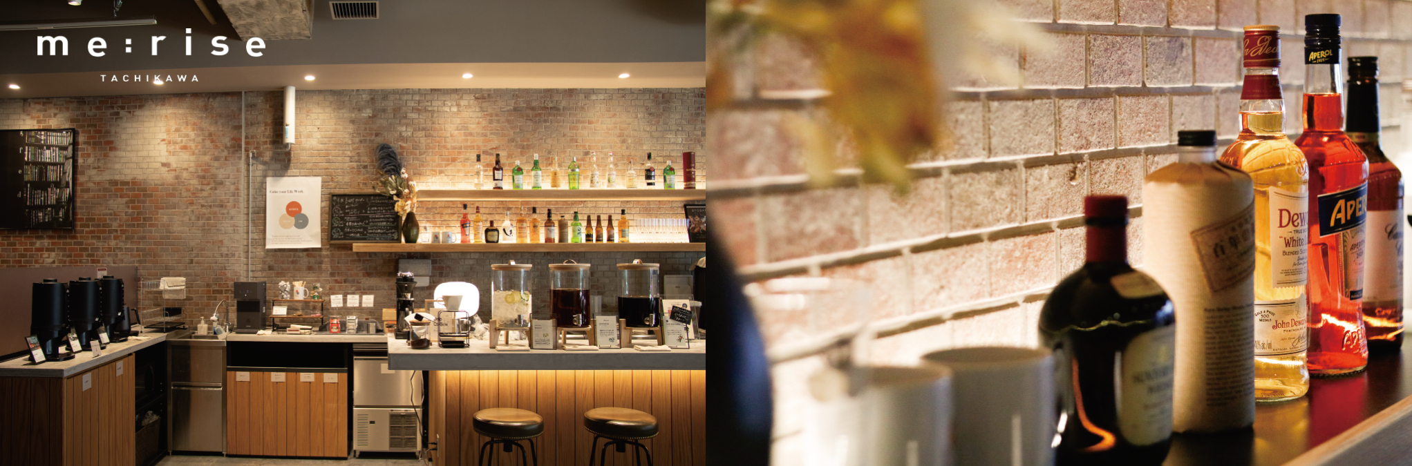 飲み屋でもなく、かしこまったバーでもない、me:rise立川のバーカウンターは、ラフに立ち寄ることのできる場所。