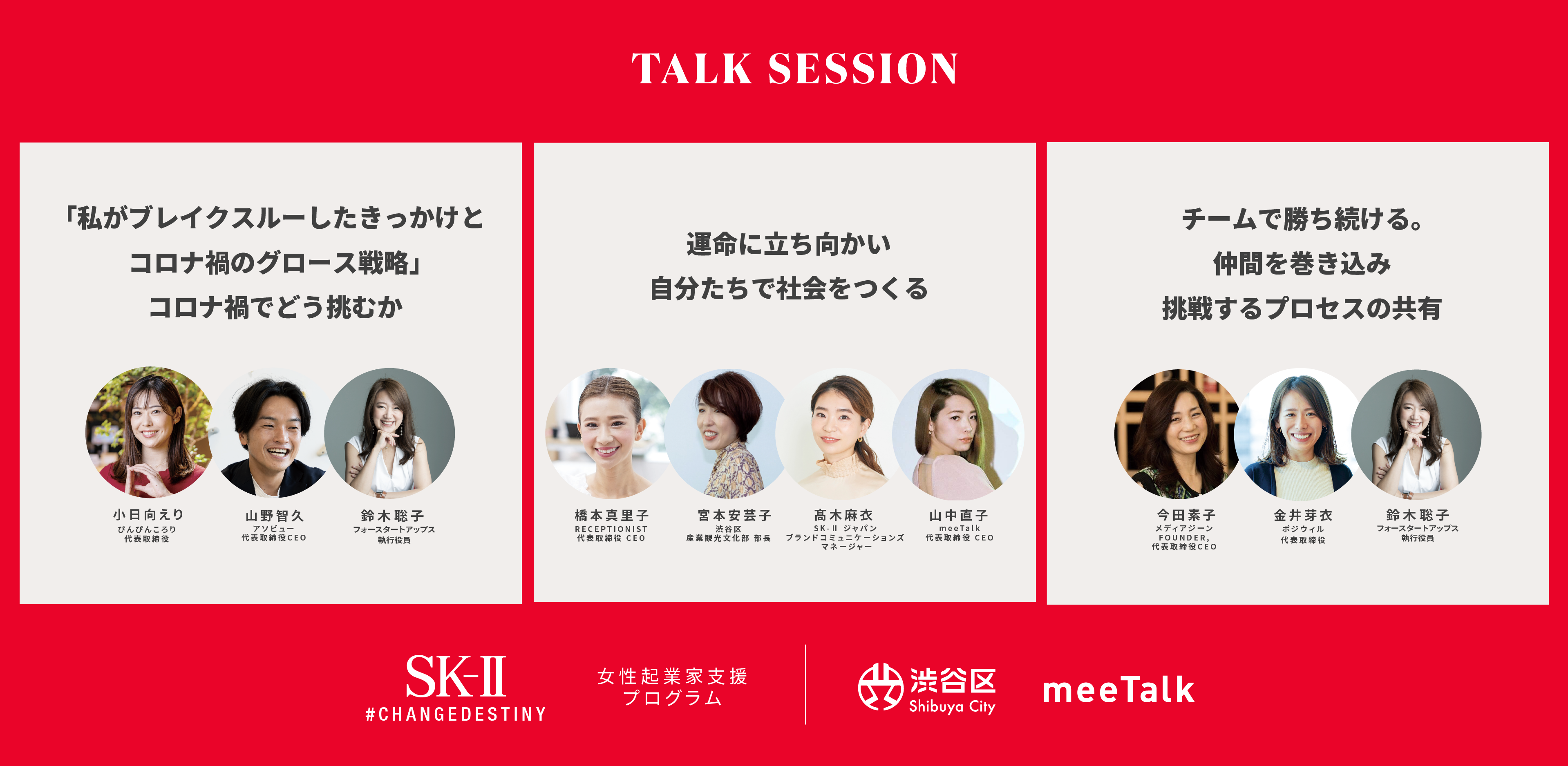 meeTalkは、「#CHANGEDESTINY~運命を、変えよう。」というブランドテーマのもと、“運命は決められたものではなく、自らの選択によって切り拓けるもの”というメッセージを発信してきたSK-IIの信念に共感し、本プログラムのパートナーとしてプログラムの企画・開催を担っています。