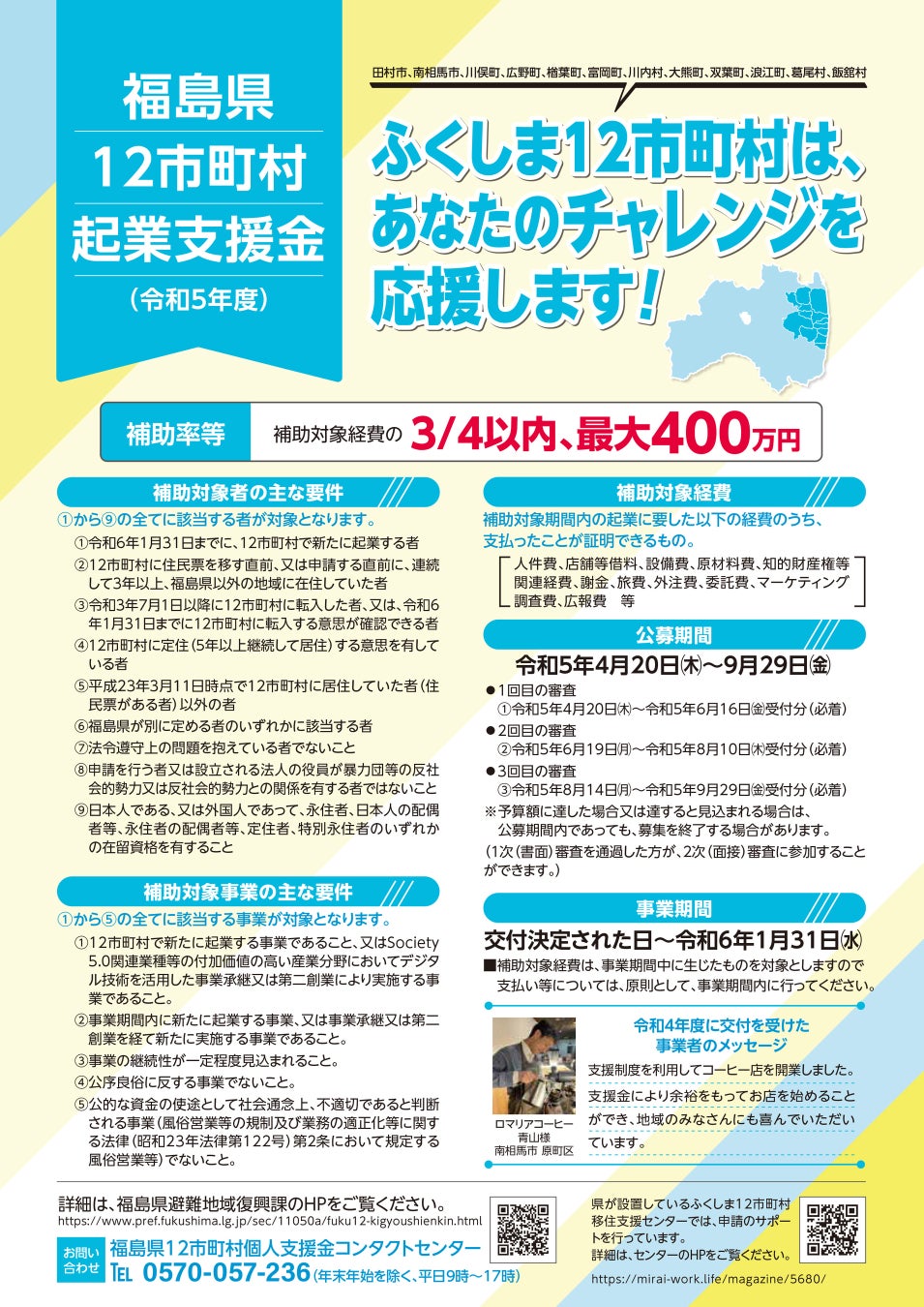 ◎詳細は福島県避難地域復興課のHPをご覧ください(応募に当たっては一定の要件があります)
