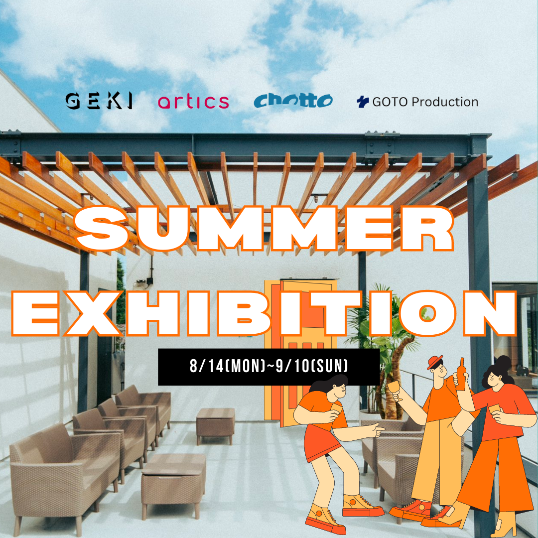 “誰かの生きる理由を創る。”をミッションに活動する、Creative Empowerment Company 「GEKI Inc.」、好きなものを通じて⾃分を表現できるSNS 「artics」、”全ての表現者を応援する”をコンセプトにしている「shisa cafe & bar chotto」のコラボレーションによって、若手クリエイターの表現の場を生み出して行くため、”SUMMER EXHIBITION”を開催します。