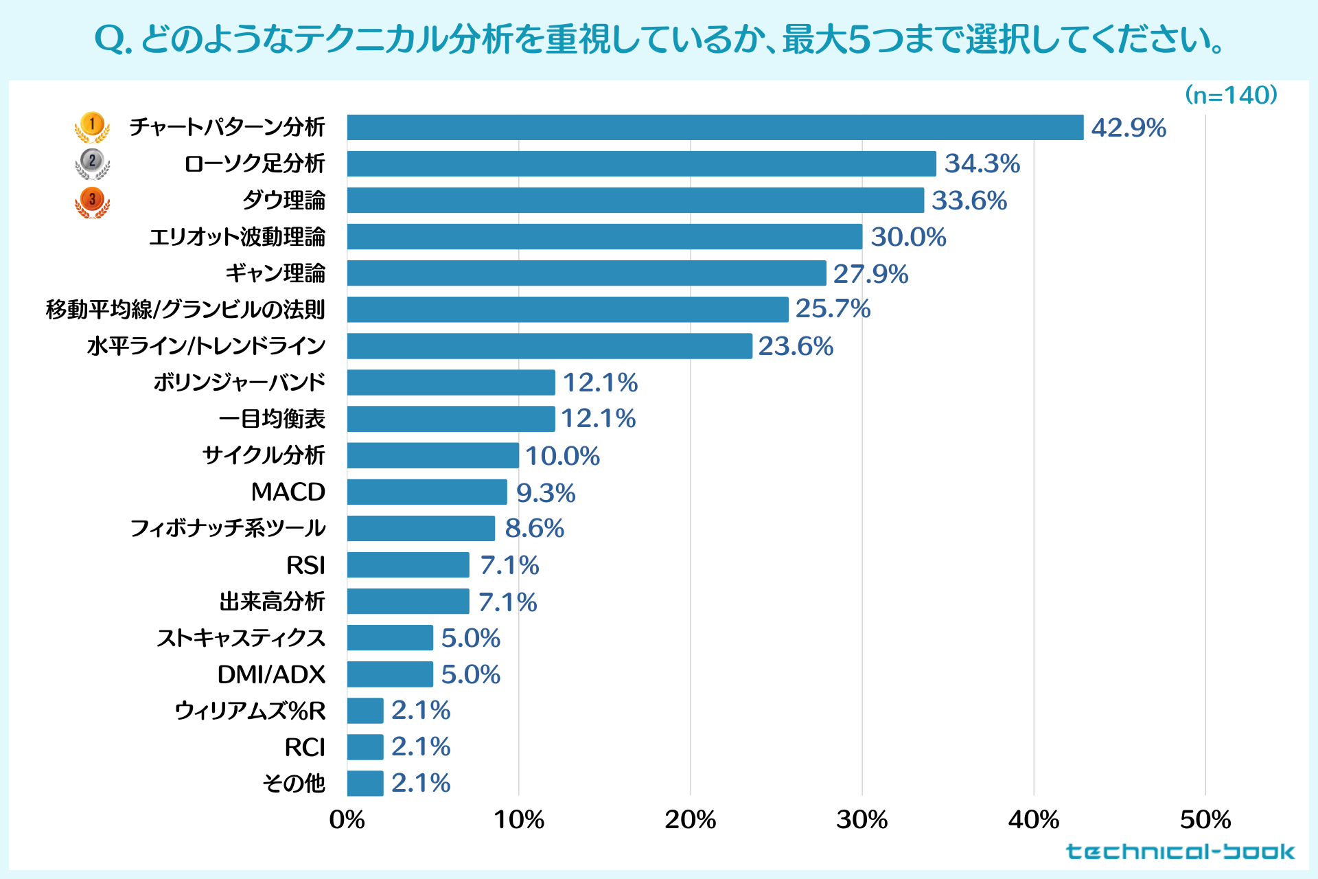 1位:チャートパターン分析(ダブルトップ/三尊天井など) 42.9%