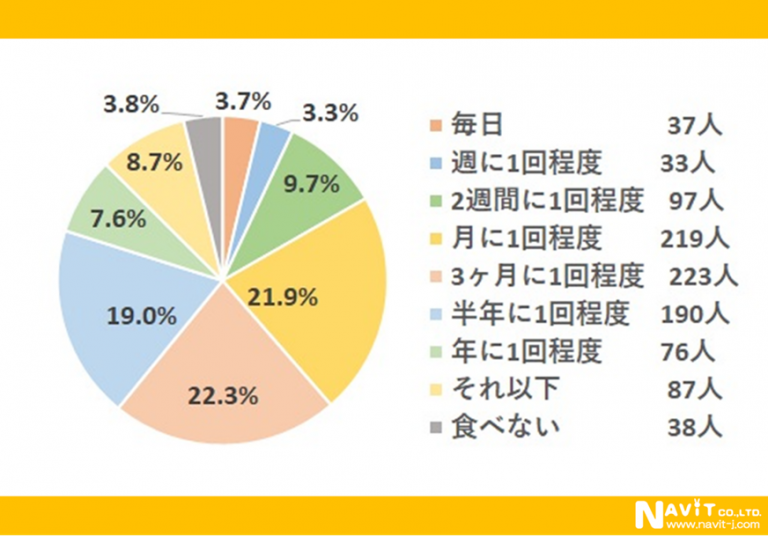 - 食べる頻度は「3ヵ月に1回程度」が最多