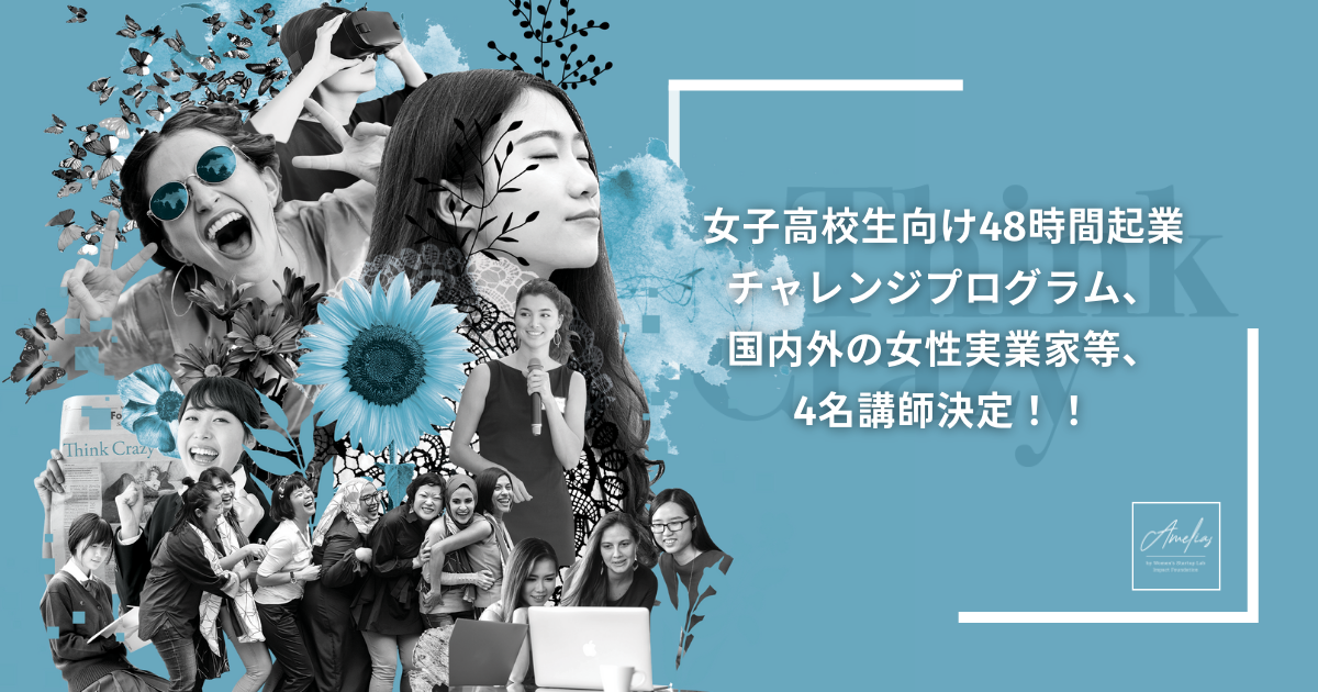 日本で起業が少ないと考えられる原因に関するある調査では、失敗に対する危惧や、身近に起業家がいないことが主な理由としてあげられています。Ameliasは、普段出会うことのない世界で活躍する女性起業家や女性リーダーとの交流の場や、起業に対するマインドセットやスキルを習得するプログラムを提供し、より多くの若者が「自分たちが社会や国を変えられる」と感じることができる体験の場を創出。起業家精神(アントレプレナーシップ・マインドセット)の育成を目指します。