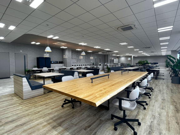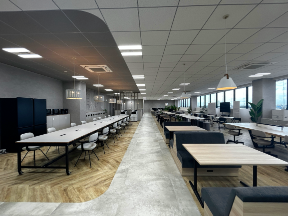 当社社員と協力会社社員がともに滞在する拠点だからこそ、ワーカー同士のつながりとコミュニケーションを重視し、効率的かつ快適に働ける事務所としてデザインしています。