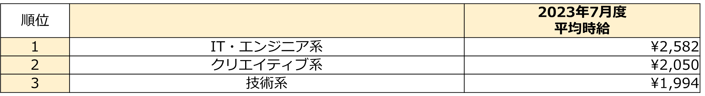 7月度の職種別/時給額ランキング