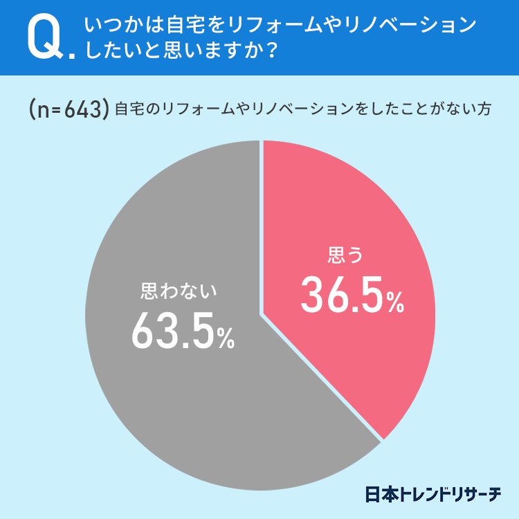 36.5%の方が、いつかは自宅をリフォームやリノベーションしたいと思っていると回答しました。