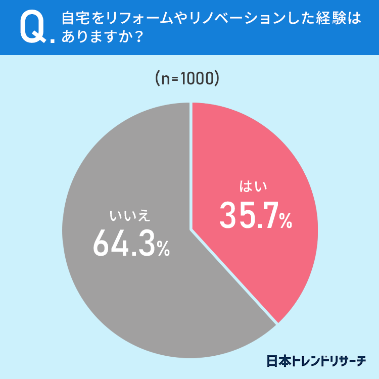 35.7%の方が、自宅をリフォームやリノベーションした経験が「ある」と回答しています。
