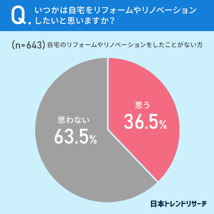 36.5%の方が、いつかは自宅をリフォームやリノベーションしたいと思っていると回答しました。