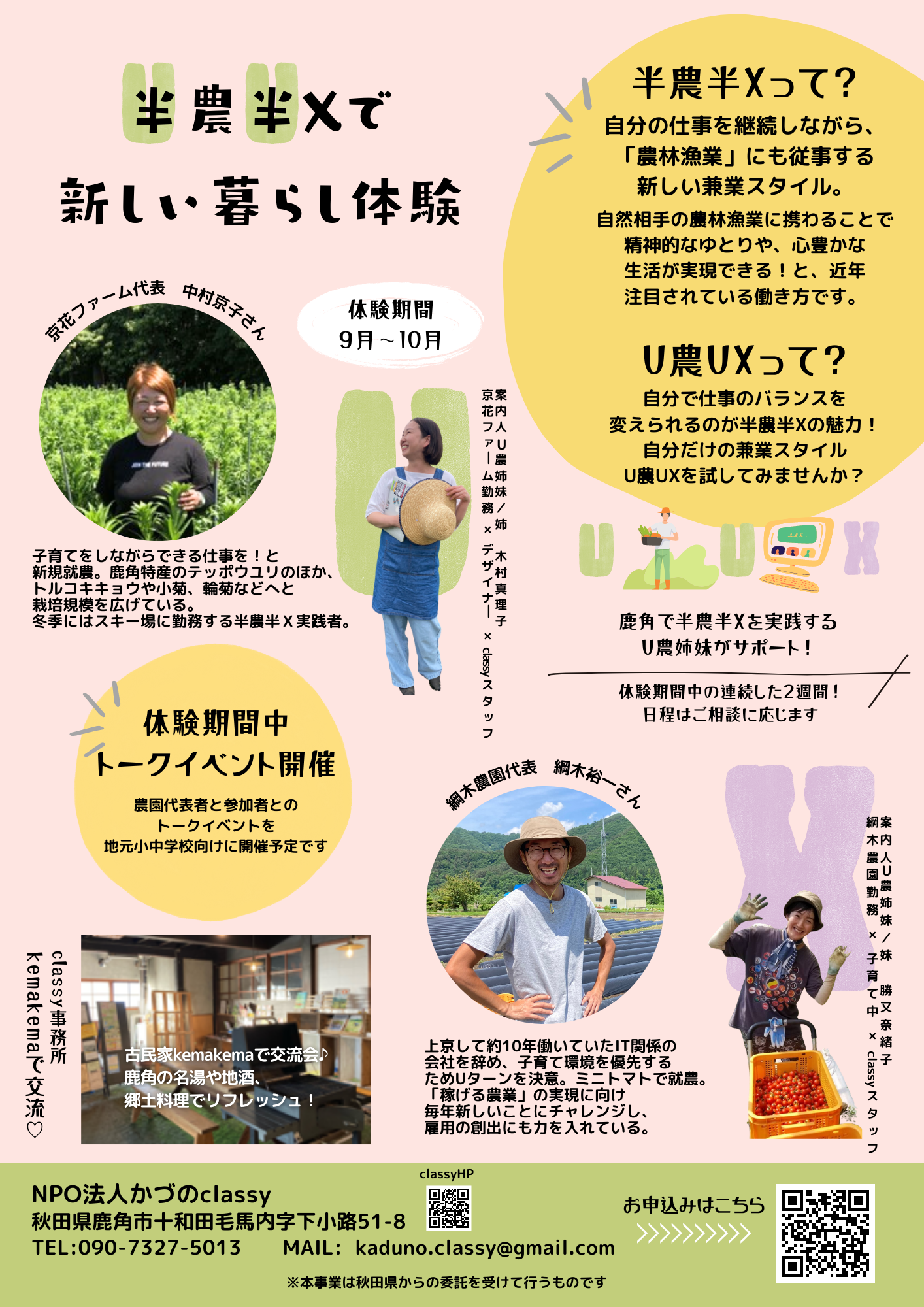 自分らしいバランスを見つけて、あなただけの兼業スタイル“U農UX”を試してみるモニターツアーとなります。