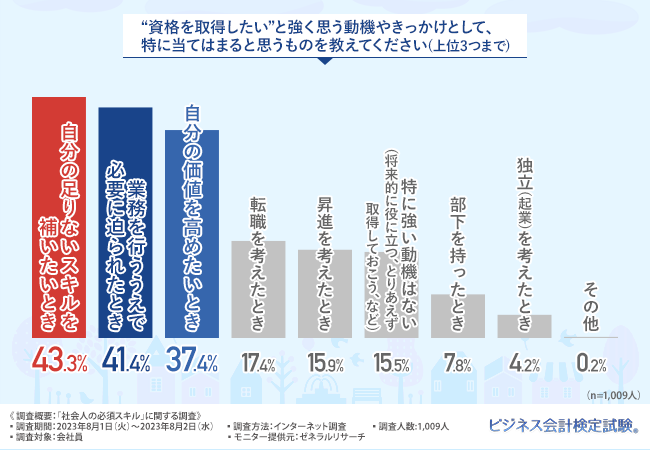 簿記は知名度もあり、会計知識が身につくものの、現代ビジネスパーソンに必要なスキルはそれだけではないことが浮き彫りになったと言えるのではないでしょうか。