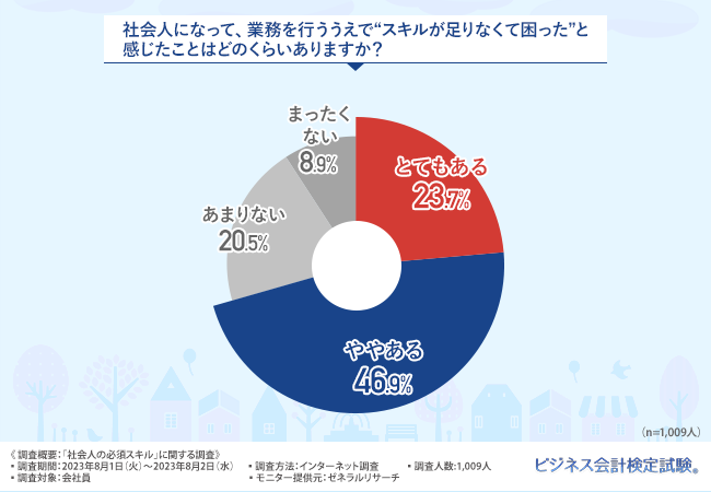 そこで今回、ビジネス会計検定試験(https://www.b-accounting.jp/)を主催する『大阪商工会議所』(https://www.osaka.cci.or.jp/)は、会社員を対象に、「社会人の必須スキル」に関する調査を実施しました。