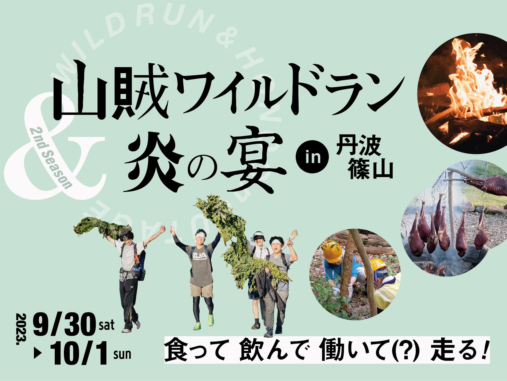 「山賊ワイルドラン&炎の宴」は日本遺産にも指定された丹波篠山市で、ハーフマラソン(約21km)を4人1組で走りながら、対象地域の魅力を”狩る”ように発見していくFUNラン。2回目となる今年は2日にわたり開催。「炎の宴」と称した、地酒やジビエを喰らう前夜祭から始まり、参加者自らが山賊になるべく、チームで宝の地図を頼りに数々のアクティビティを楽しみながら走り、ゴールを目指します。