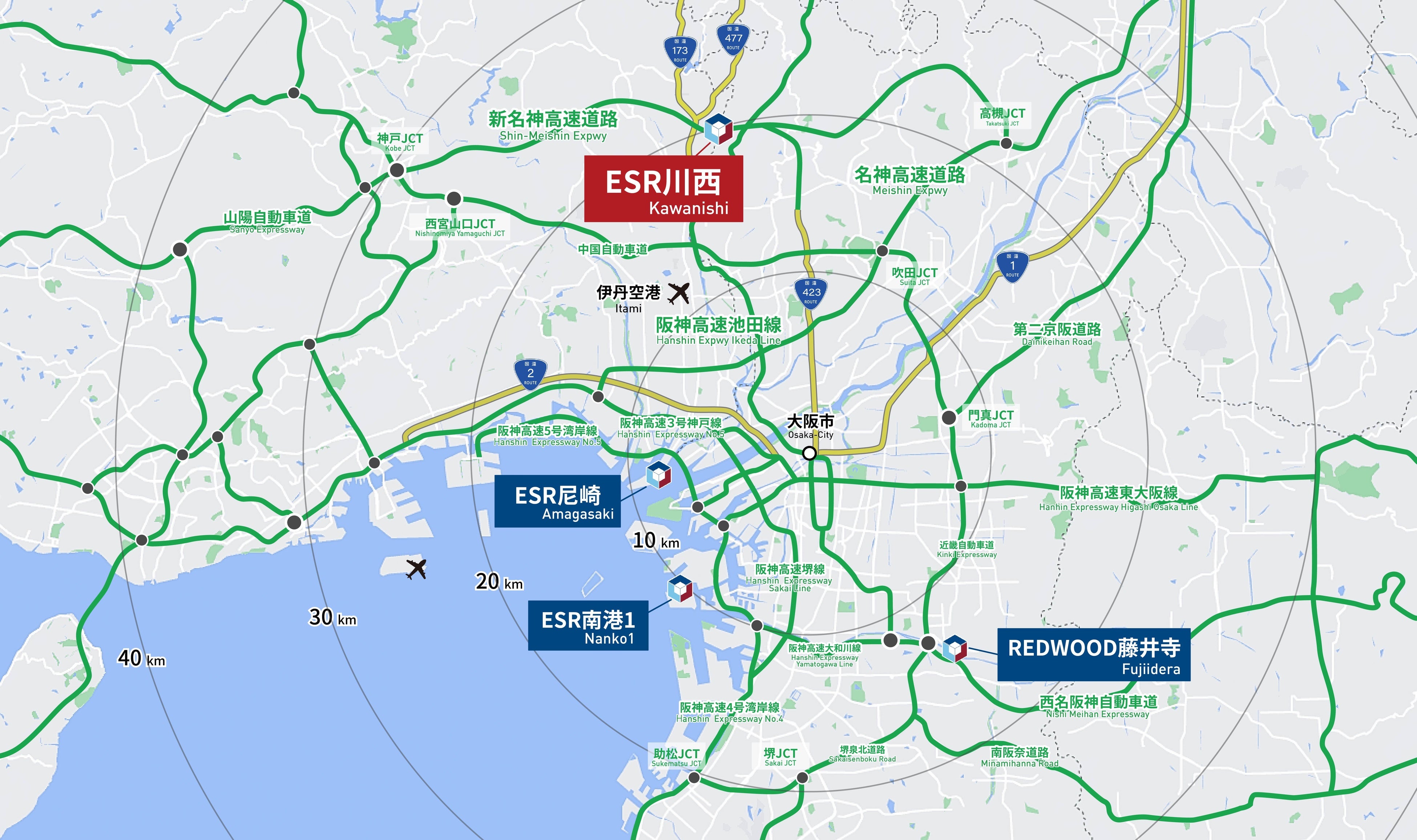 ※2:レッドウッド南港DC1、レッドウッド藤井寺DC2、レッドウッド南港DC2(他社に売却済)、ESR尼崎DCに次ぐ
