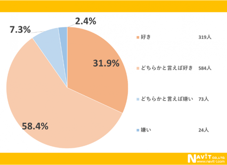 B級グルメが「好き」という方が31.9%で「どちらかと言えば好き」という方が58.4%です。合計すると90%以上の方がB級グルメが好きという結果が出ています。